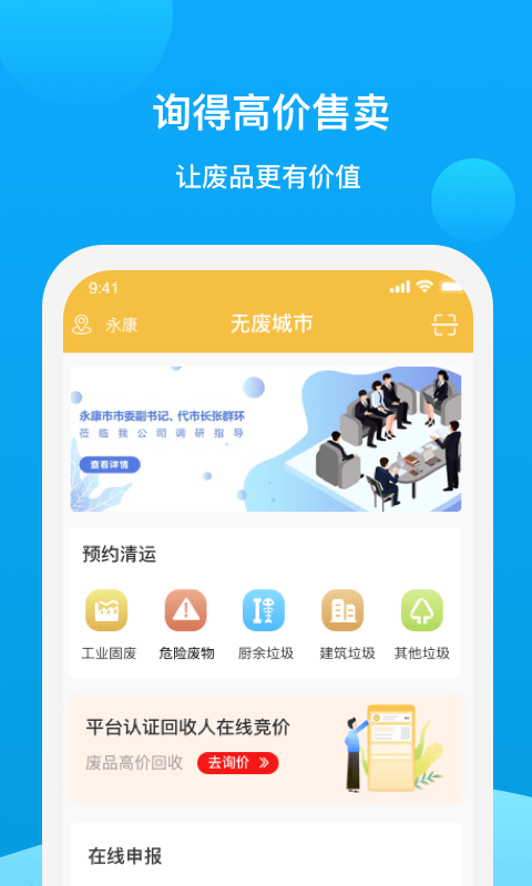 无废城市安卓版是一款非常不错的回收废品app,很多人家中都有纸板箱和喝完的饮料罐不知道去哪里换钱,或者每周废品回收时都会错过,无废城市app下载后直接可以定位用户的所在地上门进行废品回收,用户还可以查询各种废品的回收价格,非常公正。