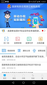 浙江税务app为公民提供在线税务处理、在线纳税、税务发票处理、发票申请等功能。可以查询国家最新的税收法规、税收计划等最新发展,实现纳税申报、纳税、发票查询等服务。