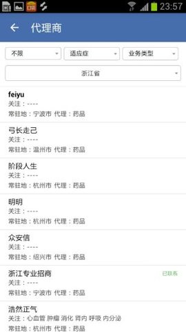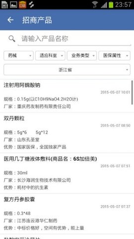 进入主页“代理”,可以根据地区、医院、优势科室等属性直接选择合适的代理,并将其添加为好友,实时沟通,准确对接业务;同时,产品可以在“我的招商产品”中免费发布,以改善产品的招商信息,有需要的代理商将搜索和浏览产品