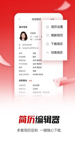 3、用户可以在线编辑和发送简历,帮助求职者找到自己最喜欢的工作