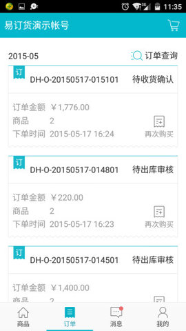 易订货app是一款为企业用户设计的移动订购客户端。随着网络技术的发展,网上购物已经成为人们生活中不可或缺的一部分,而轻松订购是一款专门针对供应商和卖家的软件!有效解决了企业与客户之间销售订单的效率问题,通过手机一键解决订单、物流、资金、支付等一系列流程问题,大大提高了工作效率。欢迎下载!