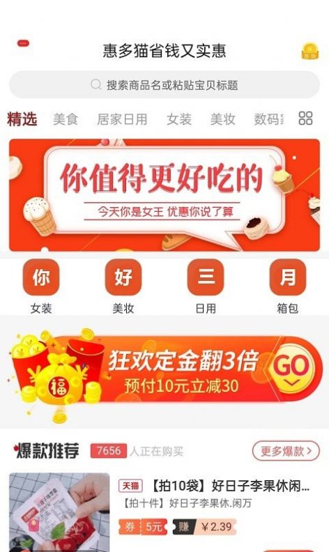 3、每日爆款推荐,帮助用户发现热门实惠的精品商品。