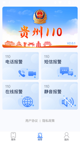 贵州110APP官方版是一款官方在线安全报警软件,用户下载APP后,可以用手机一键报警,多样化的报警方式可以帮助用户正确进行安全呼救,非常实用,还有很多方便的服务应用供用户体验。