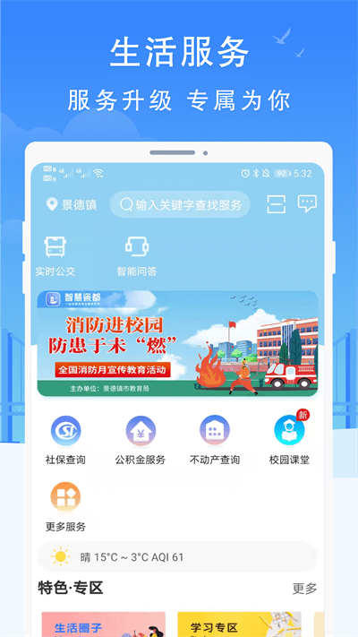 3、平台将逐步聚集全市政府服务资源,为景德镇企业群众提供全生命周期的政府服务、生活服务等,打造官方、权威、高效、便捷的智慧城市公共服务统一手持门户