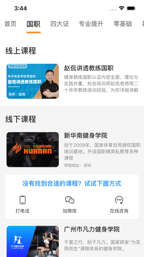 3、教练王者app下载后可以在线国职报考,选择想要培训的学院