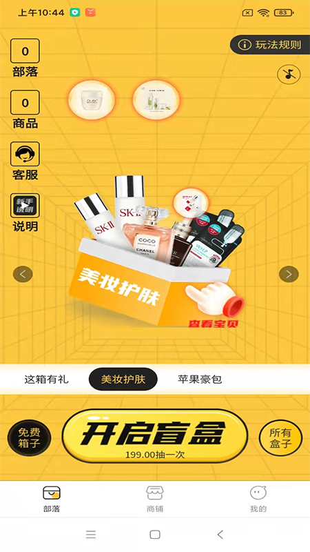 3、这是一个涵盖各种盲盒的网上购物平台,当你每天登录平台时你也可以获得分数,你可以用分数画盲框。