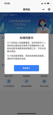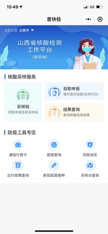 微信晋快检app是微信上的一个小程序,可以有效地提高采样效率,缩短采样时间,用户需通过微信小程序搜索“晋快检”或手机扫描微信小程序二维码进入小程序进行登记采样。