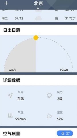 2、晚晴天气掌握更多每日天气数据内容,无论是温度、空气质量、风、湿度等。