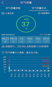1、空气质量实时报告:包括PM2、5、PM10等6种污染物,全国空气质量排名,检查你所在城市的空气水平。