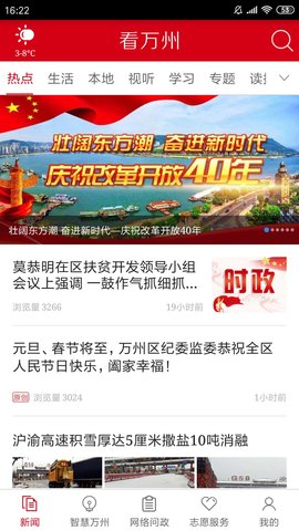 看万州客户端官方版是一款地方新闻资讯软件,用户可以在万州APP上快速获取自己想要了解的信息,当地大大小小的事件都会与新闻报道相关,足不出户就能掌握全州实时新闻信息。