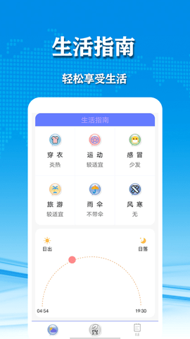几何天气app是一种生活方式服务,每天的天气和温度将被准确地显示,让您跟踪每天的变化,使用时只定位城市区域,帮助用户完成测试管理,同时,软件还收集了相应的日历假期信息。