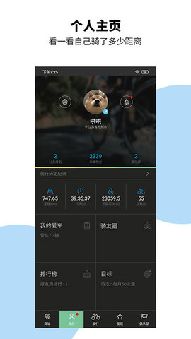 4、骑行圈:个人和官方骑行记录。