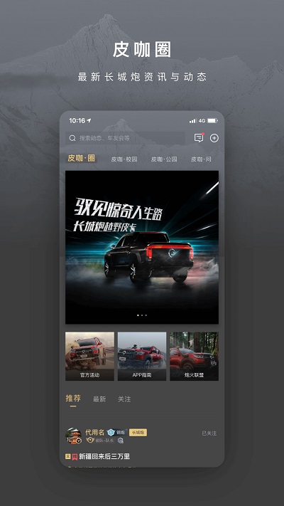 1、你想加入长城特许俱乐部,结交志趣相投的朋友吗?想要全天候享受皮卡生活并与皮卡爱好者分享你的经验吗?想要打遍全国网红越野场馆,一起疯狂吗?长城炮品牌官方APP上线,所有皮卡一起迎接皮卡的生活