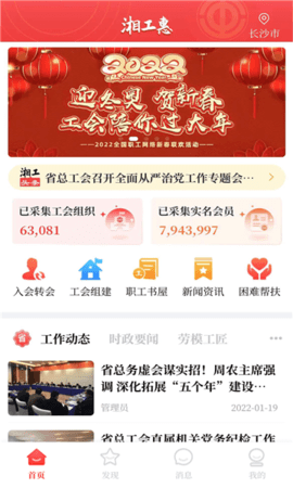 湘工惠APP是全省各级工会及其会员的思想引领、积极参与和全方位服务的平台。它赋予各级工会编号、活动管理、咨询和信息传播等职能;为工会会员提供会员转让、法律服务、求助、网上缴费、消费文件使用、团体购货、参加活动等服务。