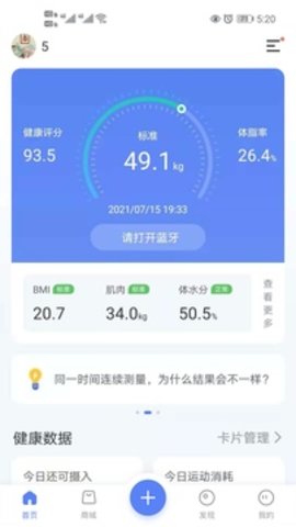 3、数据申领:用户可根据情况进行申领,这里收集所有蓝牙检测到的体重波动数据