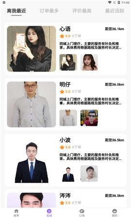 2、服务种类全面,包括上门按摩和理疗、宠物喂养、家政服务、资源回收等。