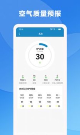 1、天气信息包括未来7天的实时温度、体温、PM2、5、湿度、气压、能见度、降雨和天气