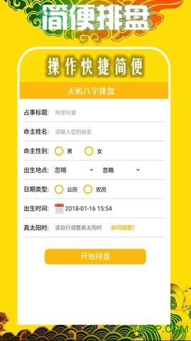 2、用户只需填写占卜名称、主名、性别、占卜时间是阴历还是阳历,即可进行简单的占卜