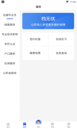2、从户籍到档案,您可以进行信息查询、在线实习、签约托管,付费续订可以使用。