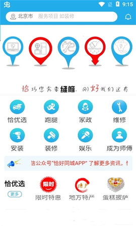 恰好同城app是一款很便捷的同城生活服务平台!在这里用户可以更好的寻找各类便捷服务,跑腿、家政、维修、安装等各类服务一应俱全,含盖便民生活服务范围广,各类师傅入驻量丰富,可以及时解决用户发布的需求,同时用户发布信息流程简单价格透明,实惠。喜欢的朋友可不要错过哦!