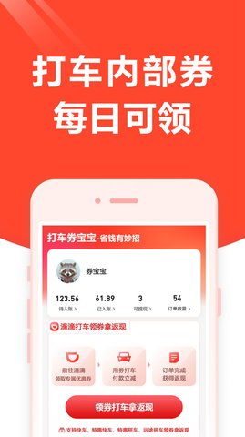 1、为经常需要打车出行的宝宝设计的一款省钱工具,方便大家随时省钱。