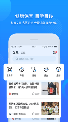 1、您可以查看平台提供的健康文章,让您学到很多健康养生知识