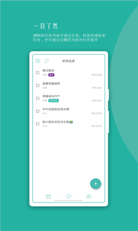 清晰的任务列表可通过分类、标签快速检索任务,并可通过设置优先级对任务排序