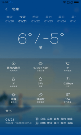 3、好天气主页还会根据不同的天气显示不同的图片,一目了然的了解天气状况。