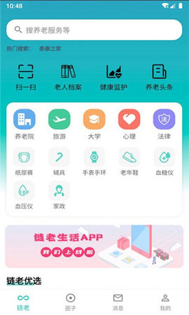 链老生活软件是一款全新的健康生活软件平台,这款软件为大家推荐最新的养老方面的知识,用户在平台中为大家推荐优质的养老方面的资讯,全新上线的手机养老服务软件,各种健康知识我们可以学习,也可以在上面跟同龄人进行沟通交流,参加一些社区活动,丰富自己的老年生活。需要的用户可以下载试试!