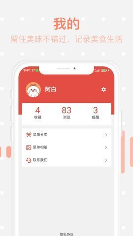 1、收集用户信息,浏览喜欢的信息。在我的页面,您可以统计和编辑用户的收藏夹,浏览等信息。方便用户查看和记录浏览食谱
