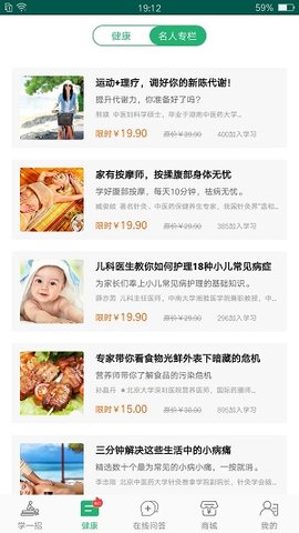 健康管家中医堂是一款在线中医知识咨询管理的软件。为用户提供丰富的养生知识,比如推拿,刮痧,艾灸等,能够根据自己的需求来进行选择,对中医知识的入门学习,喜欢的用户来下载。