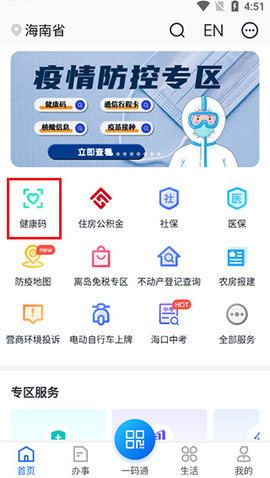 1、海南健康码APP一站式查询支付信息、办理各类线上单据