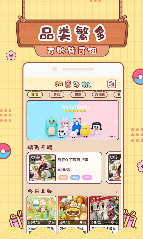 扭蛋君app是一款火热的线上扭蛋商城软件,相比于传统的扭蛋机,线上扭蛋可以不用到繁华的都市排队,也比线下拥有更多的种类可以选择,有了扭蛋君app你的手机就是一台小型扭蛋机,无论身处何地想扭就扭,再也不用担心想扭蛋时身边没有扭蛋机的烦恼了。