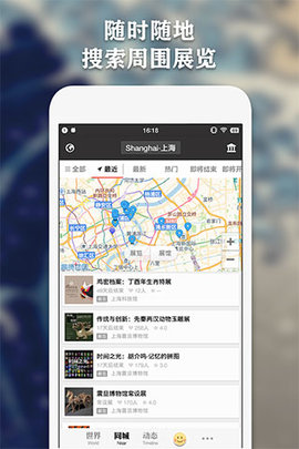 1、同城搜索,您可以通过每日环球展览轻松找到同一城市的展厅或博物馆的位置,并知道距离。