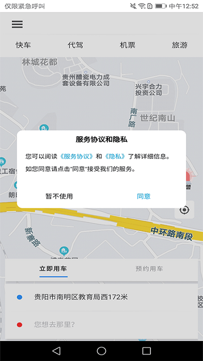 4、实时导航:选择打开定位功能服务,查看到自己以及司机的相关位置信息。