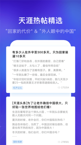 天涯社区是一款在线便捷的聊天管理的软件。这里每天都有成千上万的用户使用,为您带来最新的社区资讯信息。能实时的在这里与有相同爱好的用户互动交流,能轻松享受聊天带来的便利。