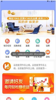 云创金顶是一款实惠的的在线购物服务软件。拥有丰富的商品资源,可以推荐高品质高价值的优惠券商品,提供保质保量的产品内容,随时都能抢到特别好的商品,体验智慧、便捷的购物服务。