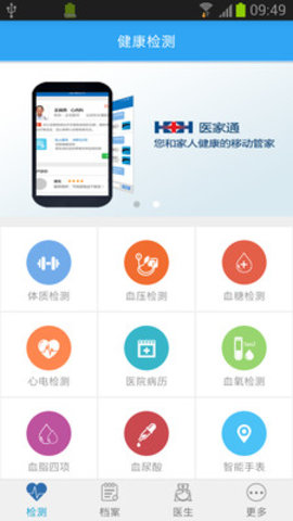 通过医家通app及其配套的智能家庭健康硬件,用户可以在家中测量个人体质、血压、血糖、心电图等健康状况,快速采集医院病历,实时传输检测数据,建立个性化健康档案。健康数据连续记录并导入云端,形成完整的病历文件,方便查询和管理。