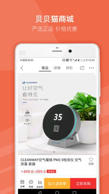 1.贝贝猫商城下载安装之后可以将商品转发给您的朋友进行检查和理解。