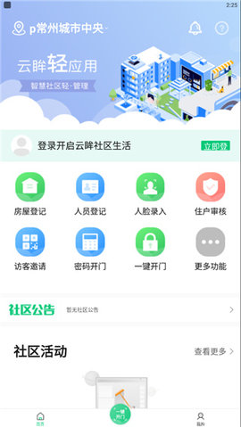,以及社区公告、问题反馈、物业论坛等社区信息服务为住户提供访客预约、一键开门等快捷功能