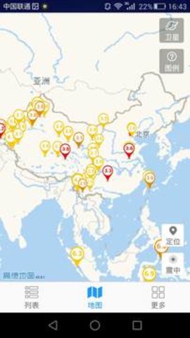 3、地震速报app地震列表上的所有地震都可以在地图上定位,通过标记符号来区分地震的震级和时间。