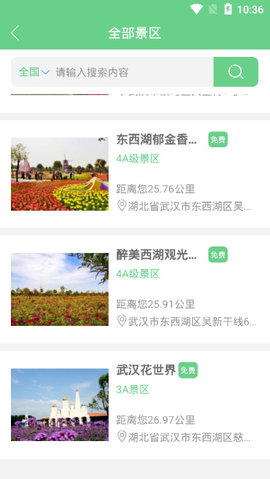 2、用户可以搜索自己所在区域的景点,看到相应的介绍和门票价格