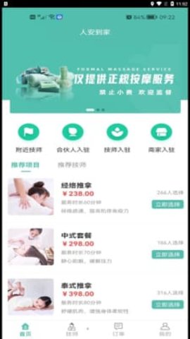 人安到家软件是一款家庭服务软件,允许用户在线预约、在线下单,然后离线提供专业的上门按摩服务,当用户想通过按摩放松,但由于太懒而无法抽出时间或无法亲自去线下商店时,可以通过这个专业平台联系商店,并要求按摩技师为用户提供上门服务,他们还可以在家享受放松和减压按摩的良好效果。