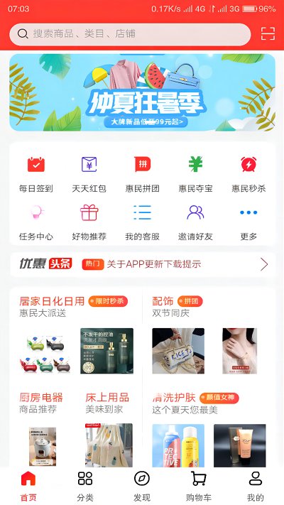 惠民生活是一款实惠的购物管理服务软件。这里拥有丰富的商品资源,经常会有一些优惠活动可以在线分享。为大家推荐限时低价的选购商品,在线可以满足大家日常生活的购物需求。