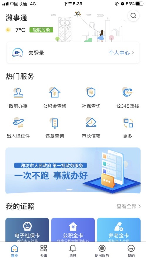 潍事通APP是潍坊市官方推出的智慧城市移动服务平台,涵盖生活方方面面,包括养老、社保、公积金、教育、医疗等综合服务平台,它是一站式的在线交易,你不用出门就可以办事,欢迎下载!