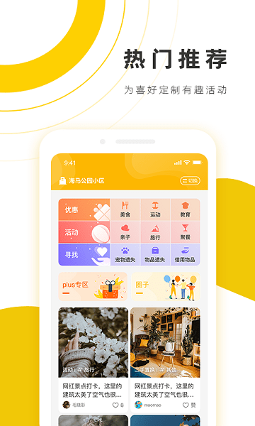 3、可以第一时间知晓社区活动,提供趣味亲子、霸王美食等亲子活动。