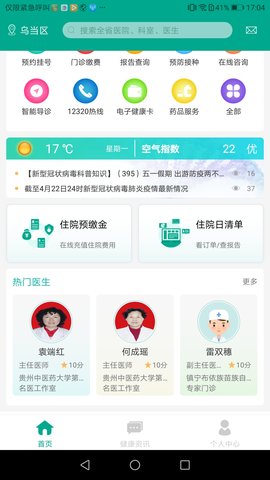 1、支持贵州省内200多家省市级医院在线预约、取消;
