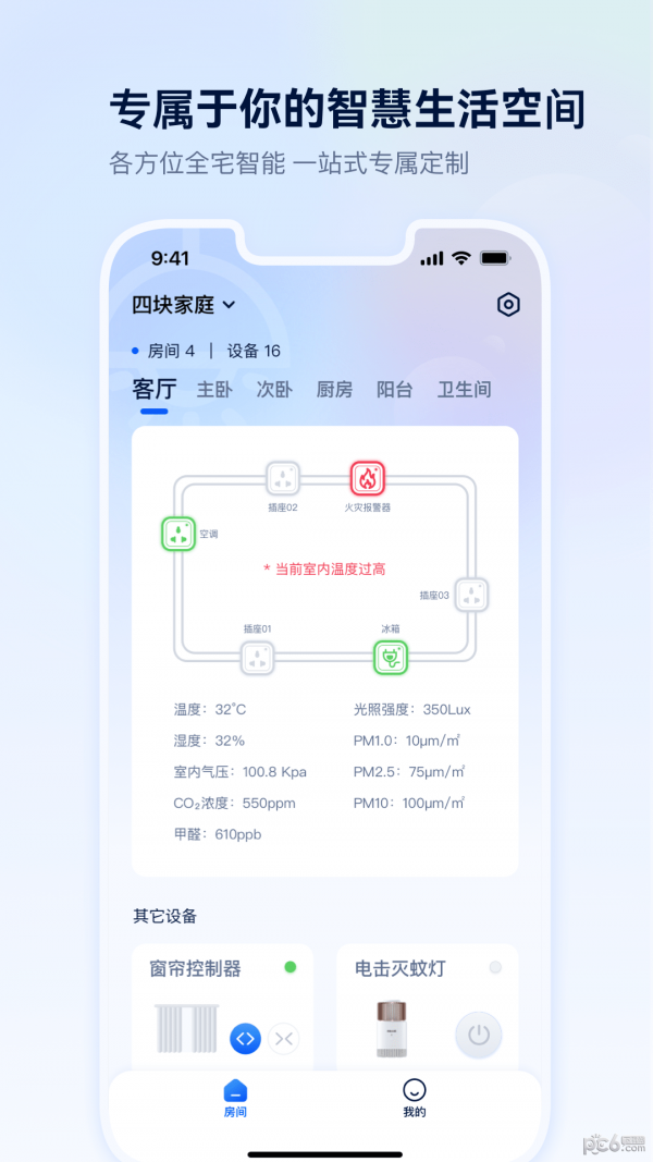 1、四块智家掌握简单实用的页面,随时添加各种不同的设备信息。