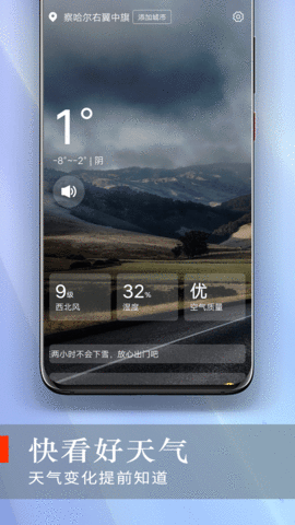 1.这种快速天气预报准确、及时、简单、方便、美观,这是一个天气预报应用程序。
