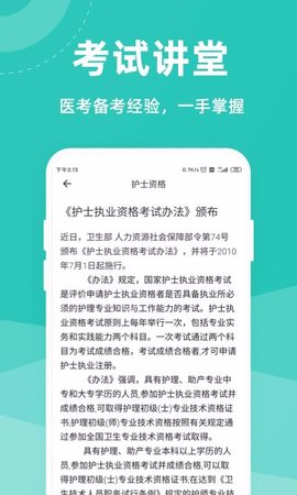 2.推送有关护士职业资格考试发布的信息,用户可以选择查看最新内容供用户体验。